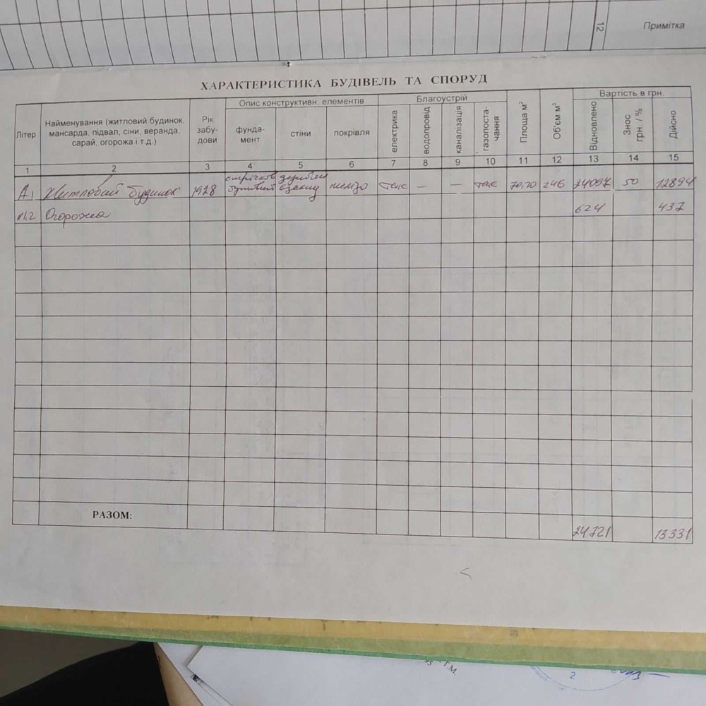 Будинок 1928 року, побудований з дерева і глини "взакидню", дах шифер.
