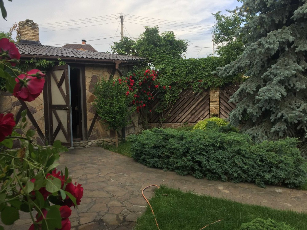 Велика альтанка (55 кв.м), камін, барбекю. Можливість добудови другого поверху. (Надійний фундамент, залізобетонний каркас, цегла, облицювання натуральним каменем,).