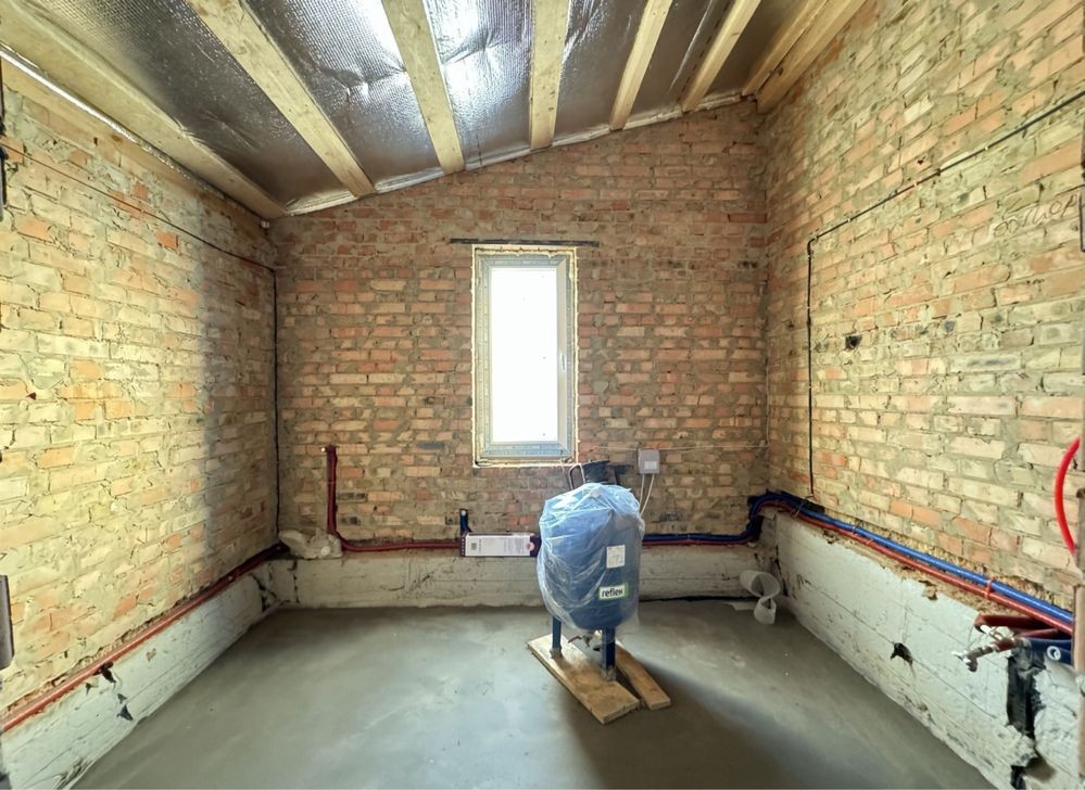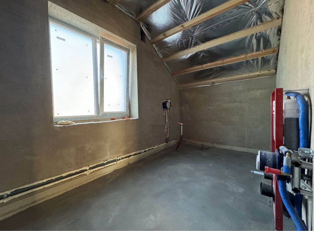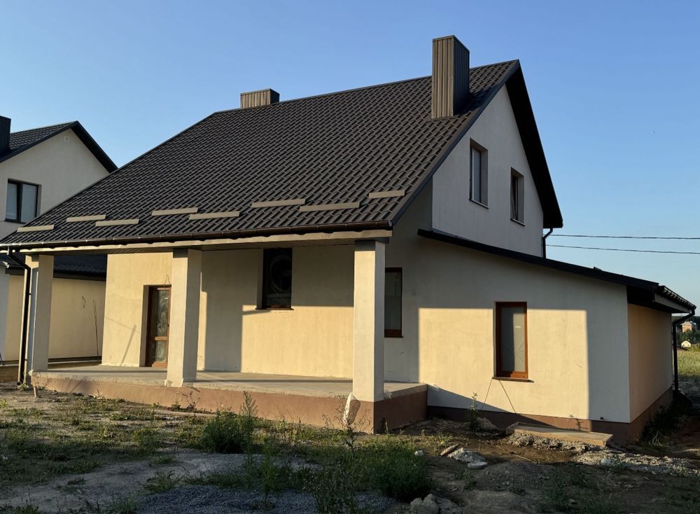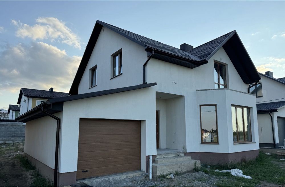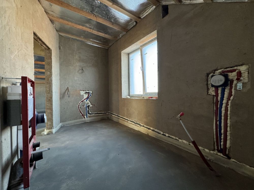 Готове опалення! Водяна тепла підлога по всьому будинку. Розведенна електрика, встановлена дорога якісна сантехніка GROHE, TECE. В двох санвузлах! Утеплений дах. Монолітні сходи. Задня крита тераса. Штукатурка стін, чистова стяжка підлоги. Три оремі спальні, два сандвузли, загальна кімната, окрема кухня з виходом на задню терасу. Гараж з котельнею.