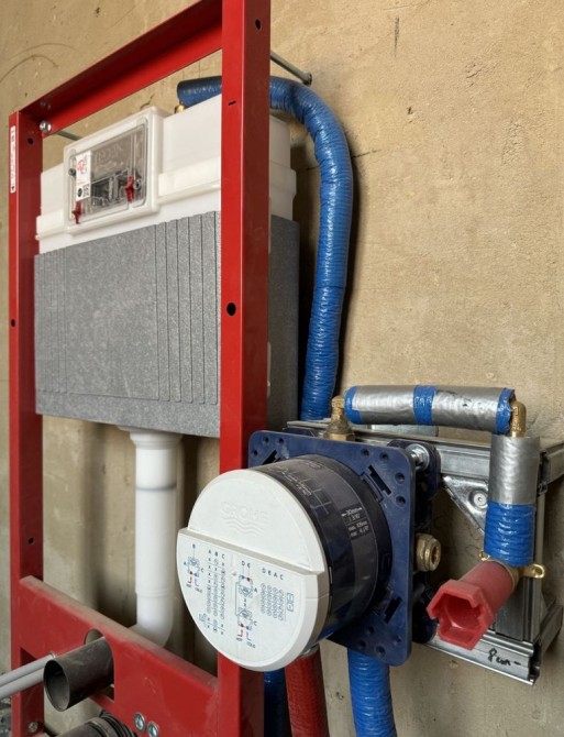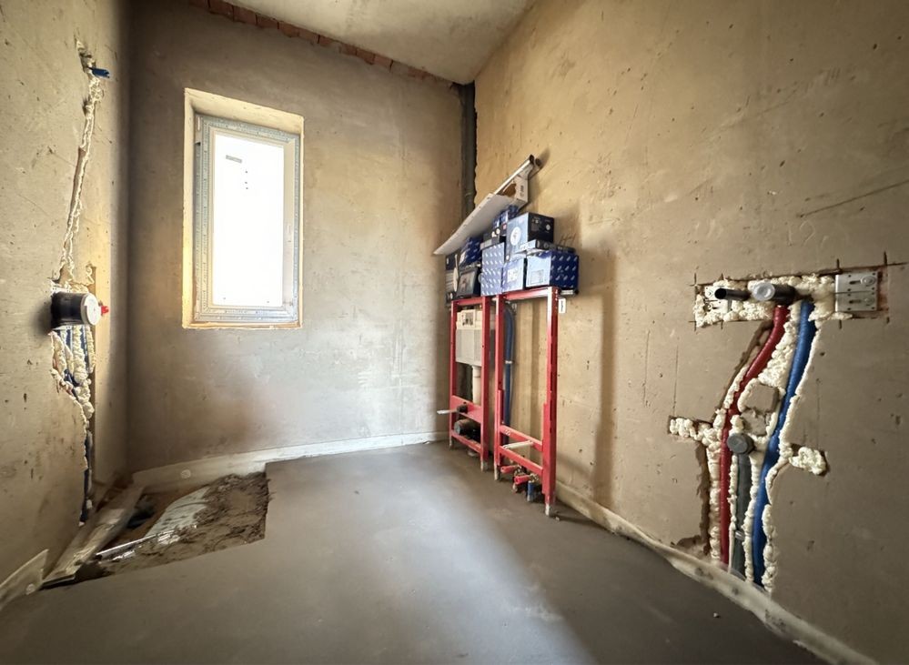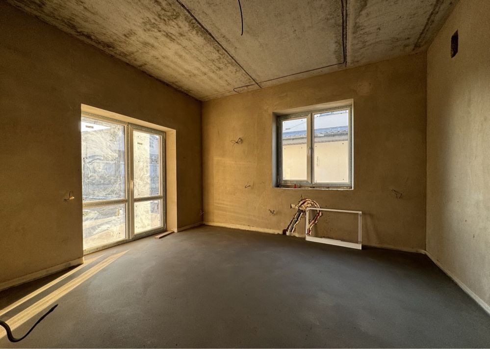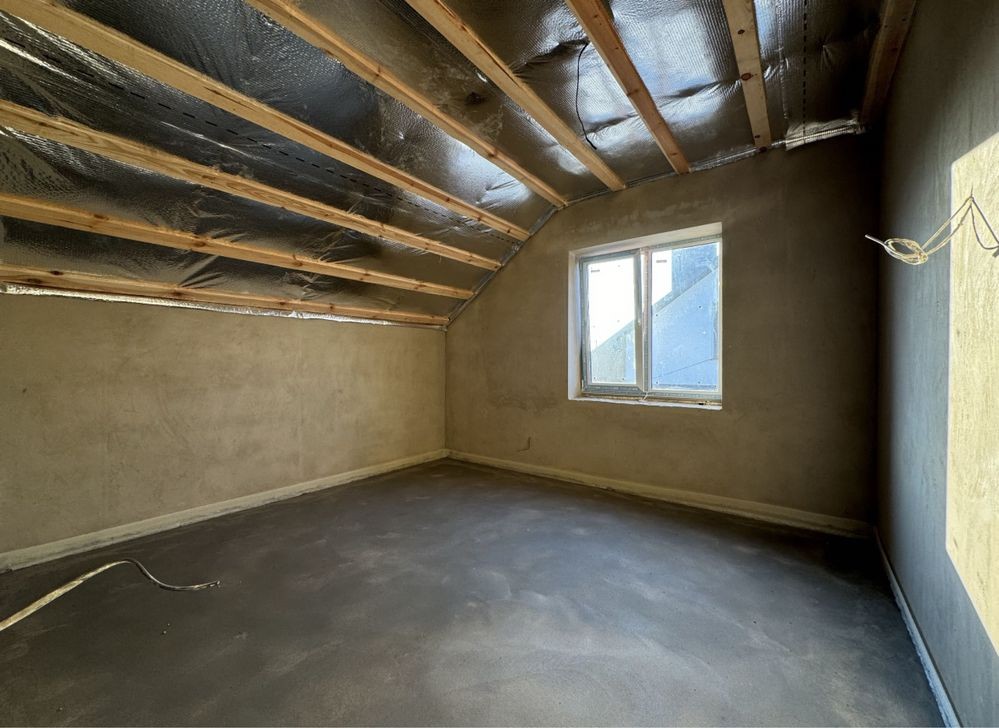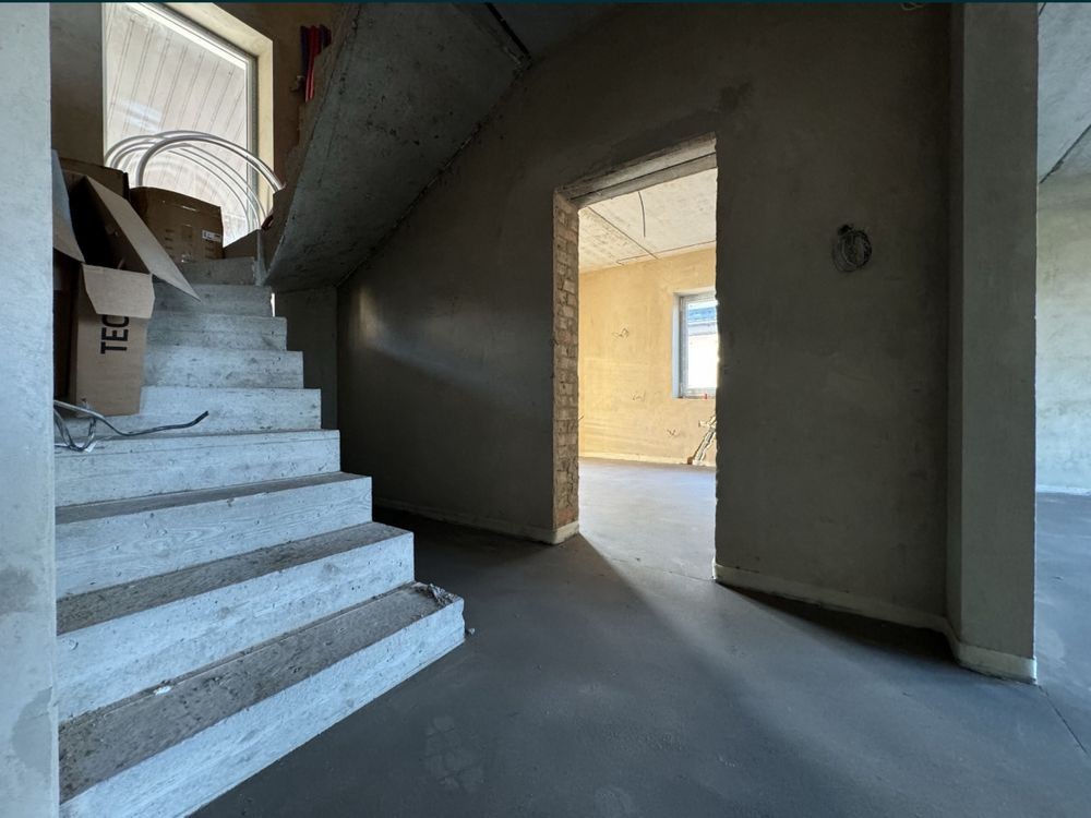 Готове опалення! Водяна тепла підлога по всьому будинку. Розведенна електрика, встановлена дорога якісна сантехніка GROHE, TECE. В двох санвузлах! Утеплений дах. Монолітні сходи. Задня крита тераса. Штукатурка стін, чистова стяжка підлоги. Три оремі спальні, два сандвузли, загальна кімната, окрема кухня з виходом на задню терасу. Гараж з котельнею.