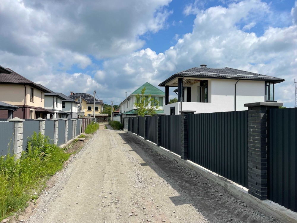Ділянка - 7 соток (спланована та підсипана на 50 см), дуже правильно зонована відчуття що більше ніж здається. По периметру ділянки встановлено паркан по монолітній стрічці з фасадної цегли та профнастилу (дуже стильний)