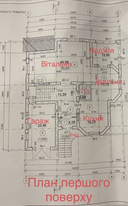 1-поверх: гараж, вітальня з каміном,їдальня, лоджія, кухня, с/в, кабінет. 2-поверх: с/в, спальня+с/в, спальня, спальня+балкон, спальня+лоджія.