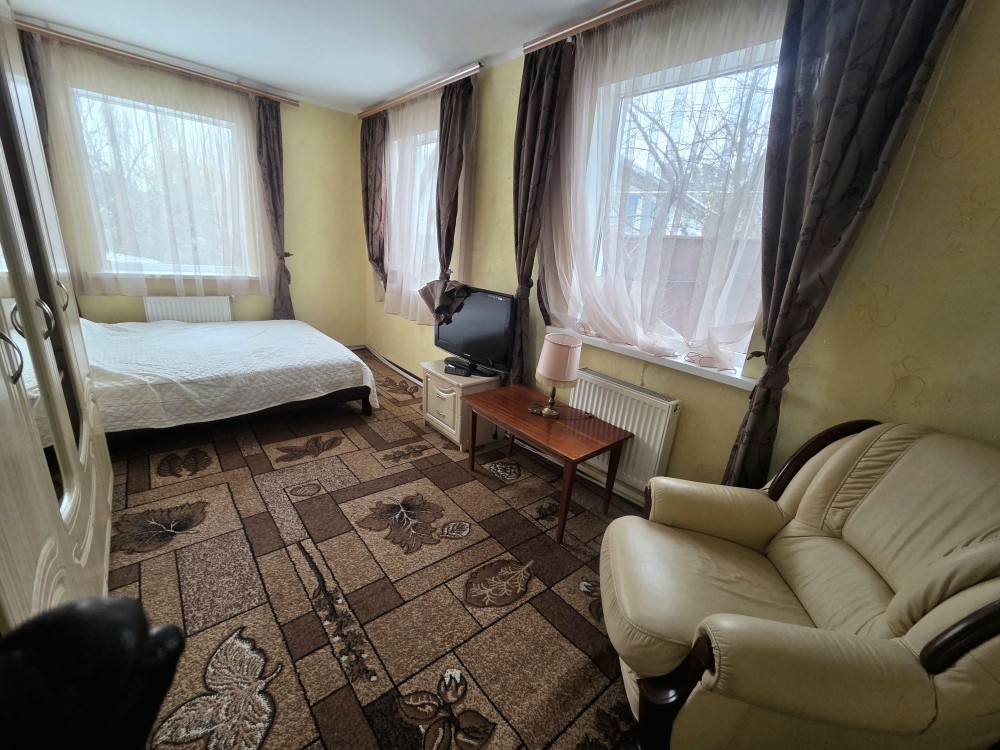 Продамо 5-ти поверховий комплекс з приватною котельнею та зоною СПА, загальною площею 1 474 м², розташований на ділянці у 0,13 га. Споруда вміщає 27 номерів. З них 14 - це однокімнатні номери, 11 - двокімнатні, 2 - трикімнатні. Щодо додаткових приміщень, то: Площа ресторану - 162 м² Площа конференц-зали - 55 м² СПА займає - 69 м² Господарські приміщення це - 110 м² Вартість: 420.000$ Будинок збудований у 2015 році. Стіни цегляні, дах вкритий бітумною черепицею, а перекриття монолітне залізобетонне. Щодо розташування, то до найближчого міста - 5 км. А ліс, гори та ріка на відстані менш як 1 км. Уся необхідна інфраструктура: парк, магазин, зупинка громадського транспорту - всього за 500 м від комплексу.