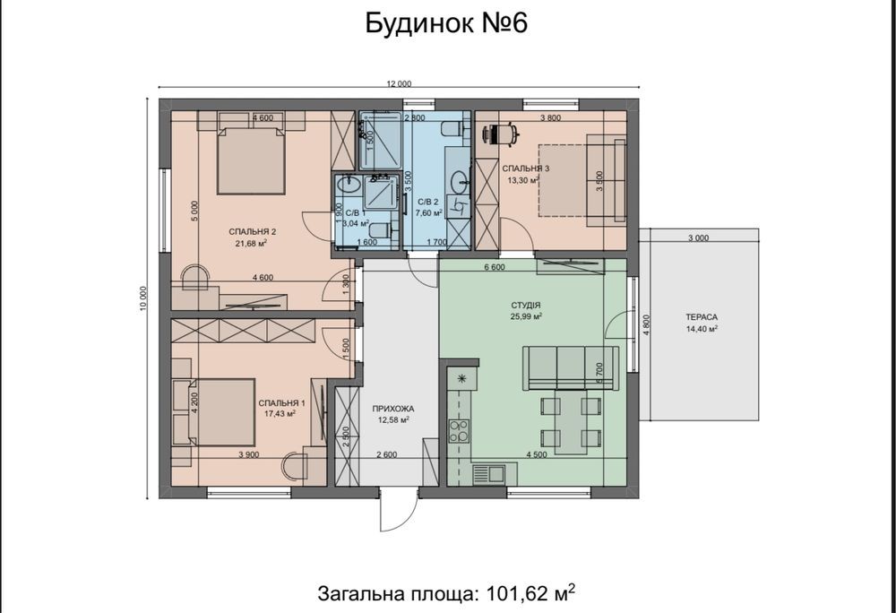 Просторий будинок 95,88 м² на ділянці 4 сотки.
