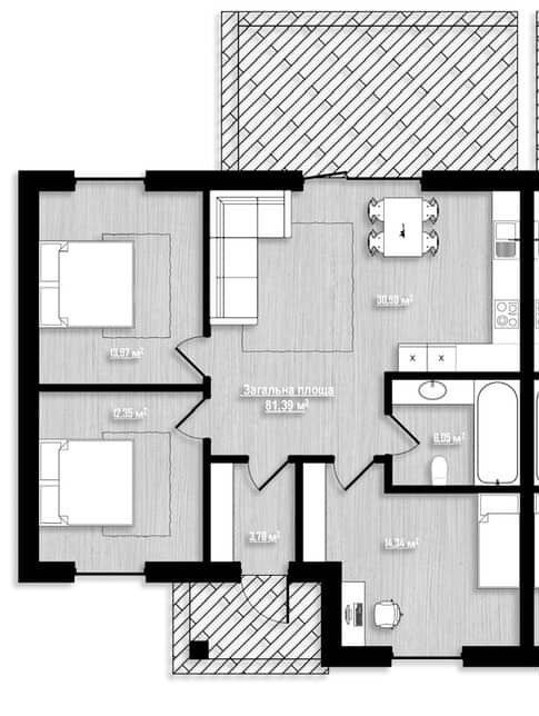 • Общая площадь 82 м2