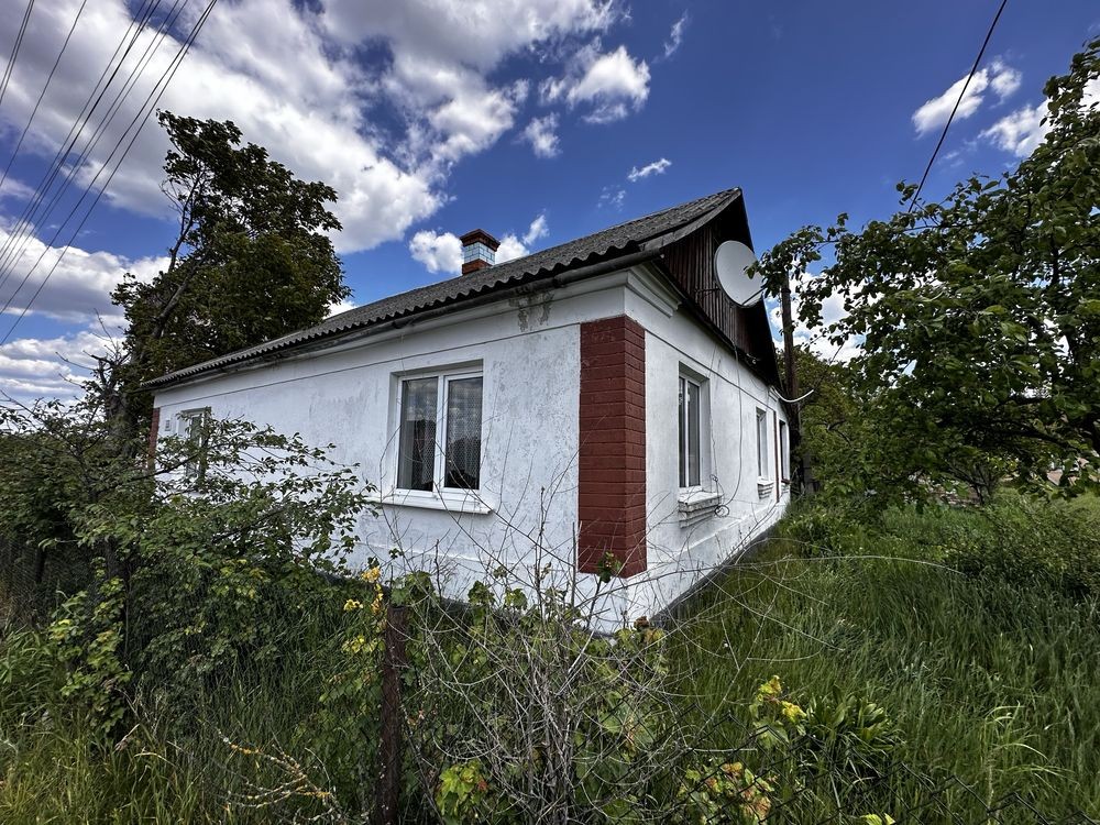 Продам будинок в селищі Пісківка, Київська область, Бородянський район. На ділянці є літня кухня з грубкою на дровах, сарай, льох, свердловина та насосна станція. Продуктовий магазин за 10 метрів від паркану там же й автобусна зупинка. Автобус до Києва. До залізничної станції 15 хвилин пішки. У 7 хвилинах ходьби озеро та сосновий ліс. Усі вікна в будинку – металопластикові. На кухні є меблі, але на фото вони частково розібрані. Усі документи в наявності. Житлова площа 33.6 кв.м. Можливий торг!