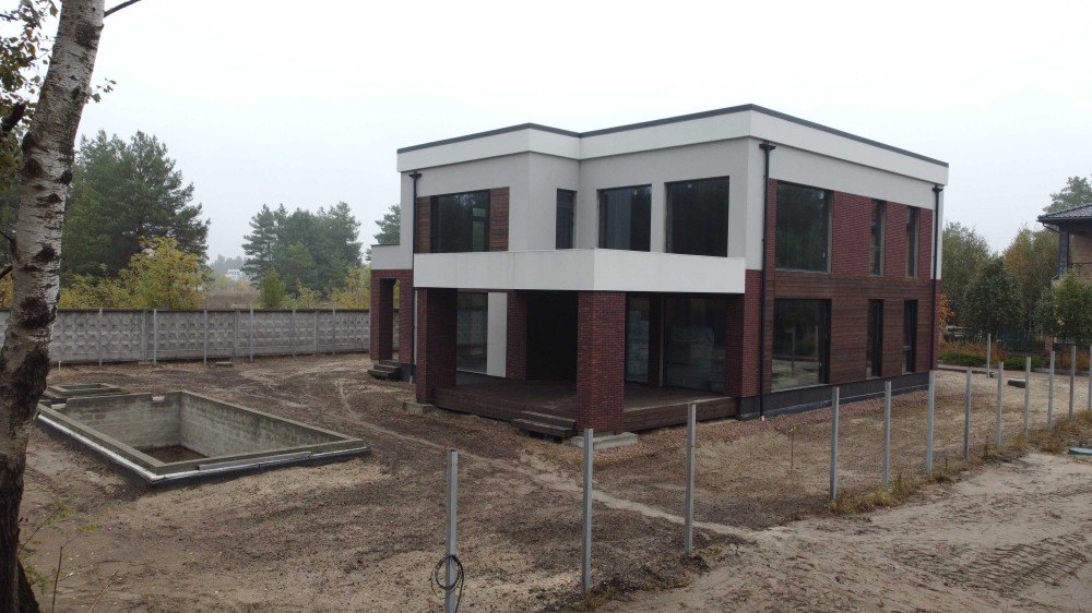 Пропоную купити новий будинок в сучасному стилі від власника. Будинок розташований в котеджному містечку закритого типу «Европейський» з власною охороною, серед розкішного хвойного лісу між Київським морем (Вишгородський напрямок) та обвідним каналом, в 15 км від КПП Оболонь м.Києва. Котеджне містечко розташоване між GoodLife park та Riviera Village. Площа ділянки 39 соток, з них 25 соток чистого лісу. Площа забудови 600 м2, що передбачає: площа 2-поверхового будинку (опалювальна площа) 299 м2. 1 поверх включає : кухня-вітальня з другим світлом та зоною каміна і виходом на терасу, 2 кабінети або 2 гостьові кімнати, с/в, гардеробна, пральня та котельня. 2 поверх: три спальні зі своїми с/в і вбиральнями, з кожної кімнати є вихід на просторі тераси. Поруч з терасою на 1 поверсі розташований басейн розміром 10*4 м. Загальна площа терас – 200 м2. Біля будинку також розташоване хозприміщення та навіс для 2 авто. На території є всі комунікації: (електроенергія 40 кВт, газ, інтернет (оптика), свердловина 53м, септик, дощова каналізація). До обвідного каналу 70 м. На ділянку також можливо потрапити зі сторони лісу, через окремі власні автоматичні ворота.