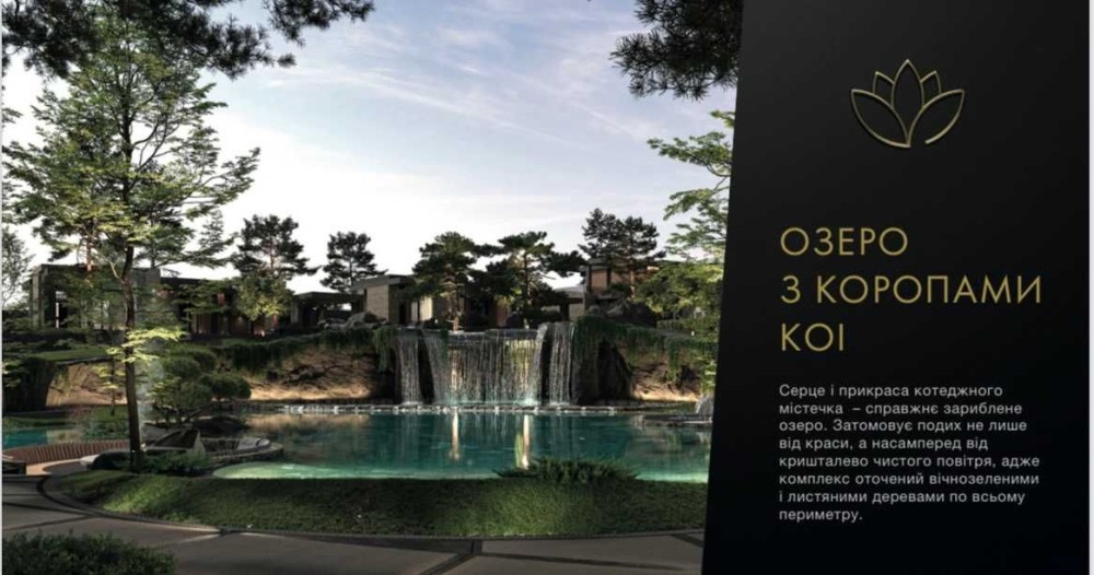 - зариблене озеро з водоспадом