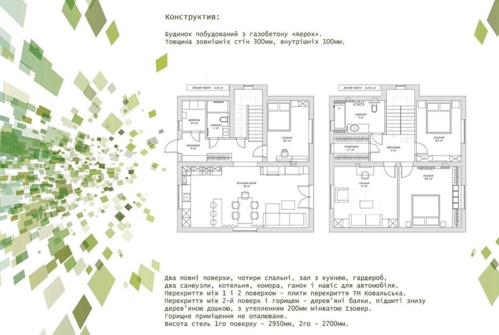 2 поверх - три кімнати, гардеробна, санвузол, вихід на горище.