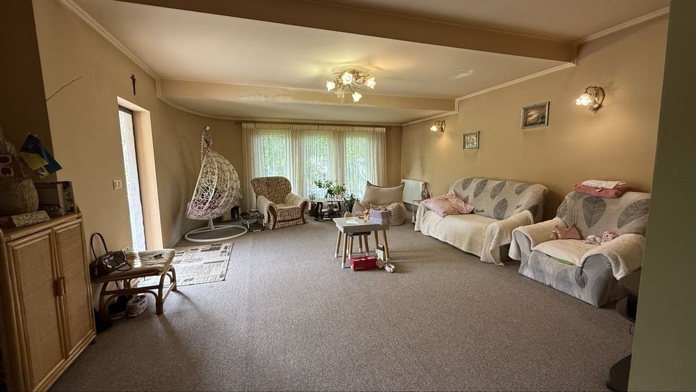 Просторе планування: 2 спальні, 2 дитячі, гардеробні, ванна, кухня, великий зал із виходом на подвір’я.
