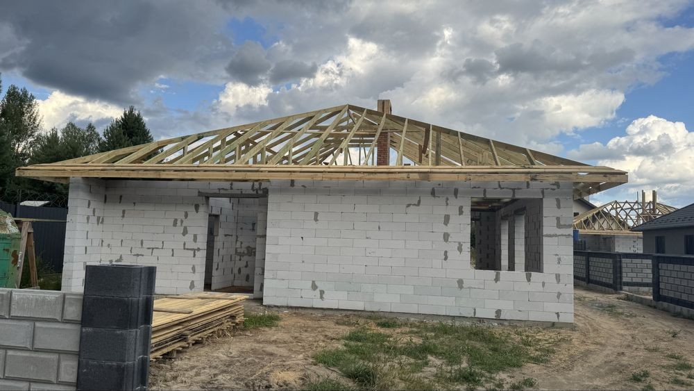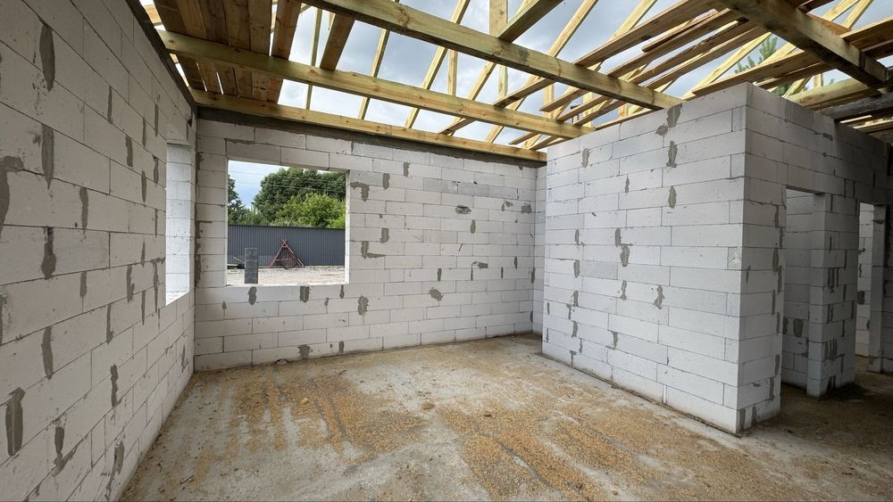 Фундамент і стіни: газоблок товщиною 32 см із додатковим армуванням і армопоясом по всьому периметру;