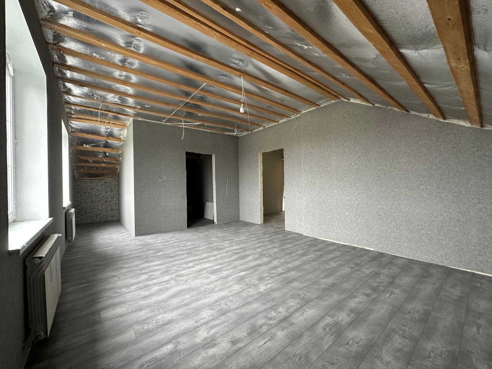 Перший поверх з чистовою штукатуркою. Другий поклеїні обої, підлога-ламінат. Санвузол покладена плитка.