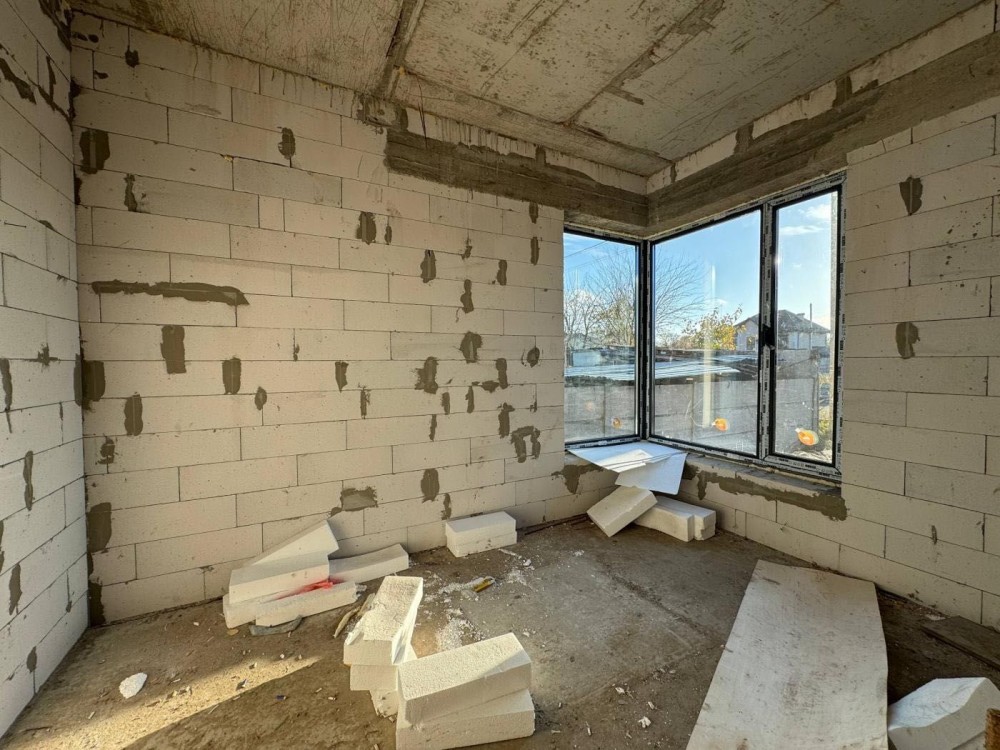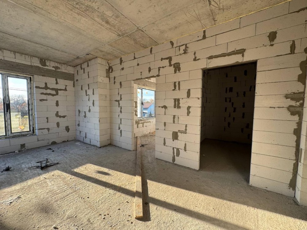 Будинок збудований з газоблоку та утеплений пінопластом. Заведені необхідні комунікації: вода (сверловина), каналізація (септик), електроенергія (7 кВт) та ГАЗ