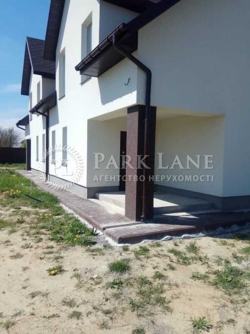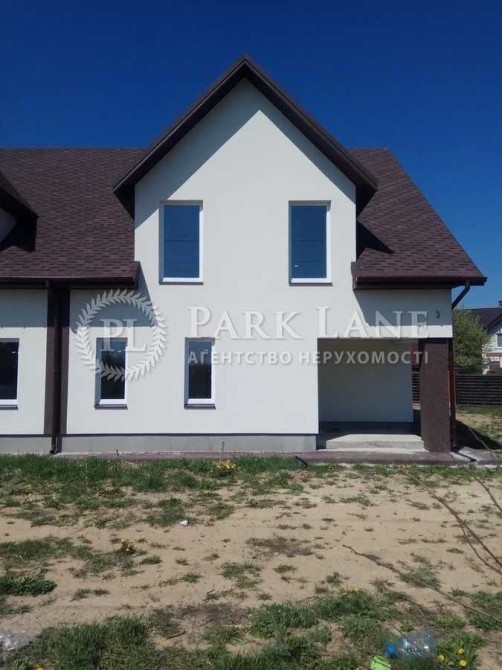 Продається половина дуплекса. Стіни газоблок 400 мм, утеплення пінополістирол 100 мм, під навісами 200 мм. Криша - м'яка бітумна черепиця Döcke. Утеплена мінеральною ватою 200 мм. Якісні вікна та двері. Земля 5 соток. Додатково можливо використовувати ще 5 соток вільної землі перед ділянкою під сад, ландшафт, гостьову стоянку та ін. Ціна 80 т дол. Площа 170 м2. Без внутрішніх робіт. На першому поверсі знаходиться передпокій, котельня, санвузол, кухня та вітальня з виходом на терасу. На другому поверсі санвузол, гардероб та три спальні. Електроенергія, підведено 16 кВт . Вода- запланована свердловина, каналізація центральна, індивідуальне опалення. Асфальтний під'їзд. Гарне розташування. До станції метро Житомирська 11 км. Поруч озеро.