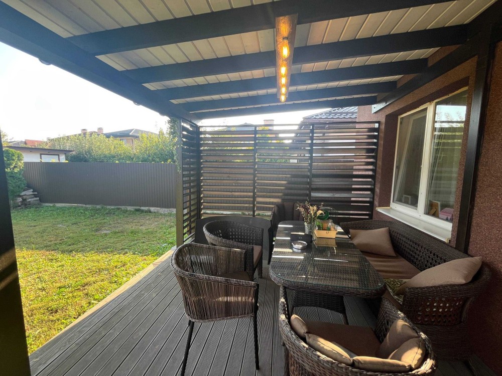 Крита тераса з куточком для відпочинку та дружніх застіль.