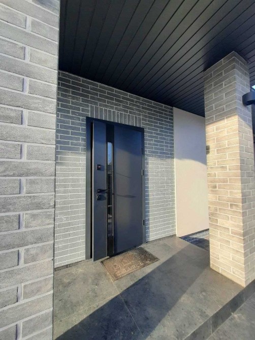 Фасад зроблений у світлих сірих тонах, що є дуже стильним і виглядає дорого.
