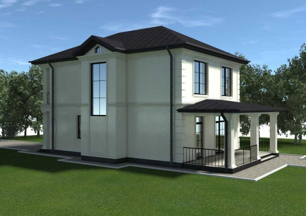 • Фасад - декоративна штукатурка з оздобленням пілястр.