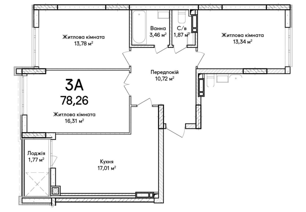Будинок 32. 3-кімнатна квартира – 80.2 м² на 5му поверсі