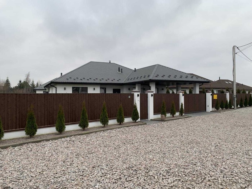 Ділянка 9 соток, огороджена парканом, автоматичні ворота, по периметру висаджені туї з крапельним поливом, газон з автоматичним поливом.