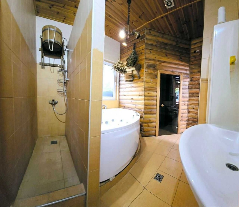 1-й поверх: кухня з усією необхідною технікою, зона барбекю, французький камін, сауна з санвузлом (джакузі + душ), прихована кладова