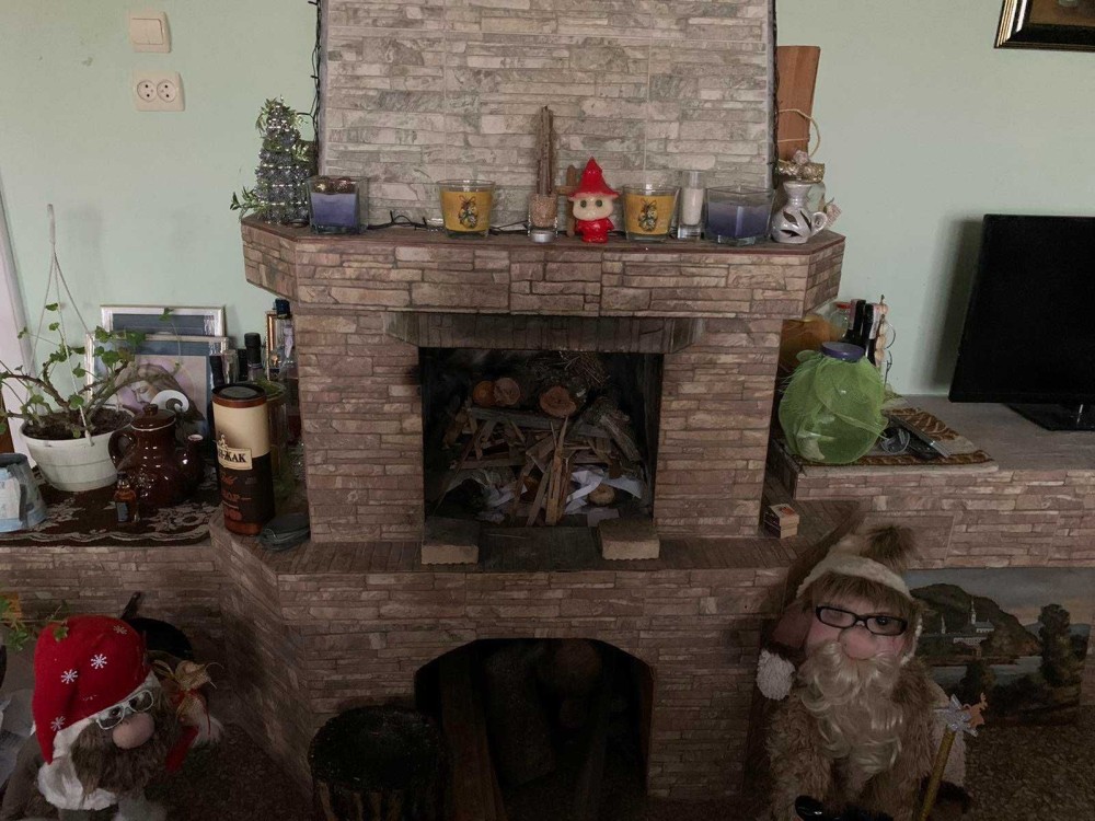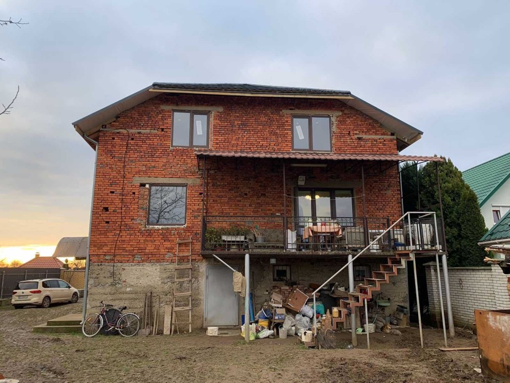 Для життя придатний тільки перший поверх (180 кв.м.)- Кухня -12м.кв., велика тераса - 21м.кв. столова з диваном (можна спати) - 12м.кв., коридор великий, туалет, ванна кімната - 7м.кв., кімната 1 - 12м.кв., велика вітальня з двох кімнат (розділена шафою) з каміном - 24м.кв. та 24 кв.м.