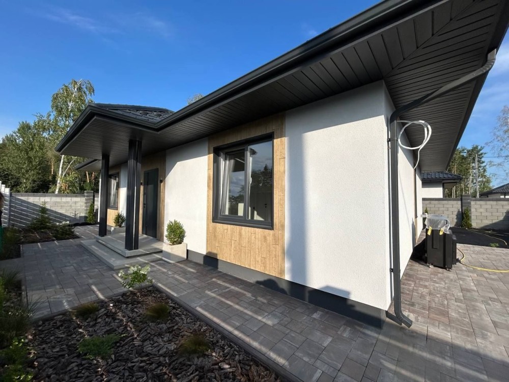 Будинок з ремонтом. Має три житлові кімнати, простору кухню-вітальню з виходом на терасу, санвузол та техприміщення.