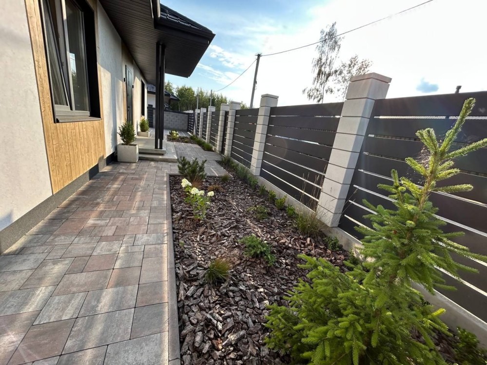 На території зроблено озеленення з автополивом.