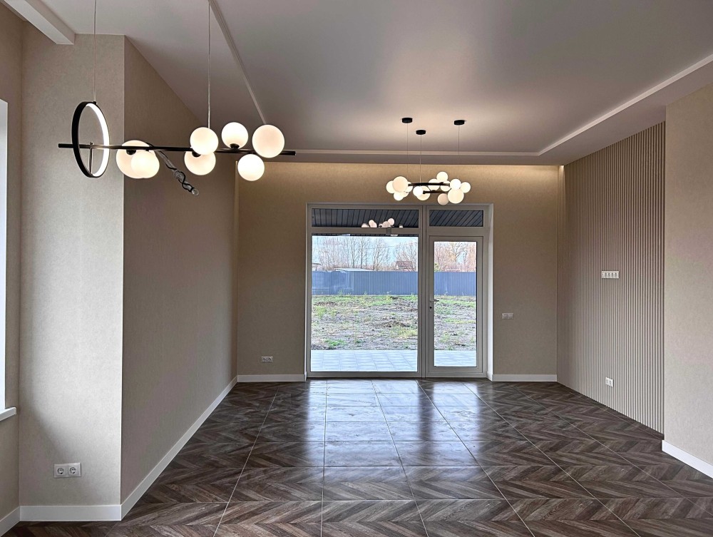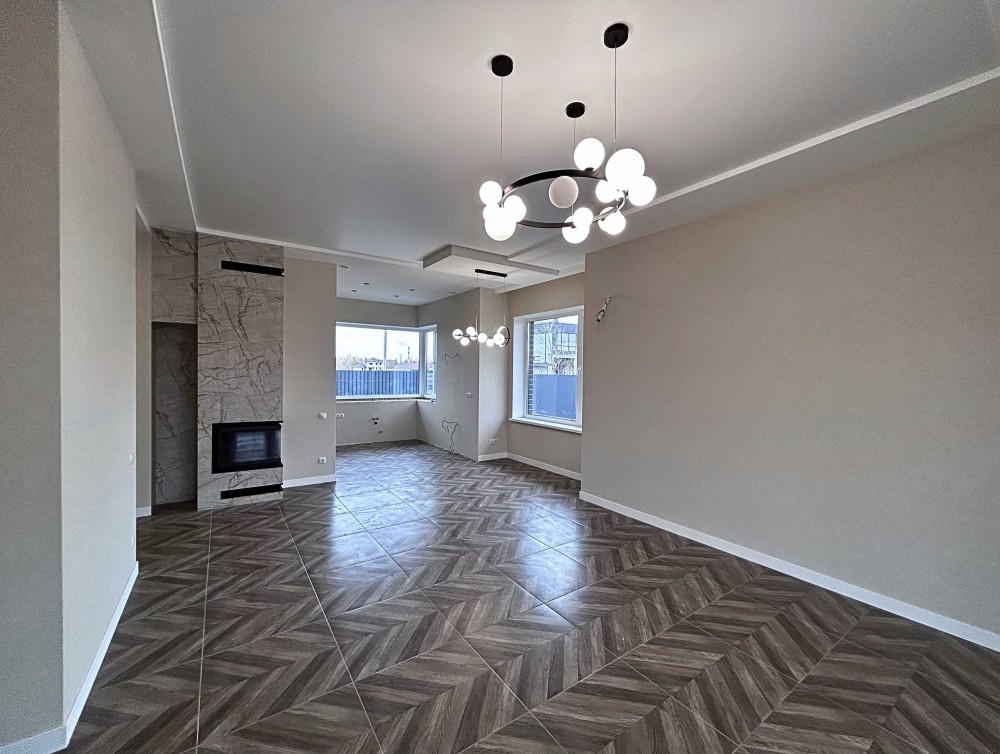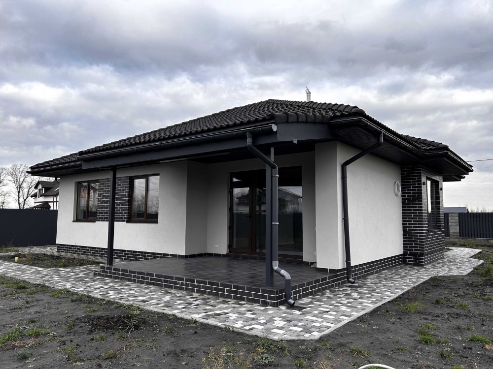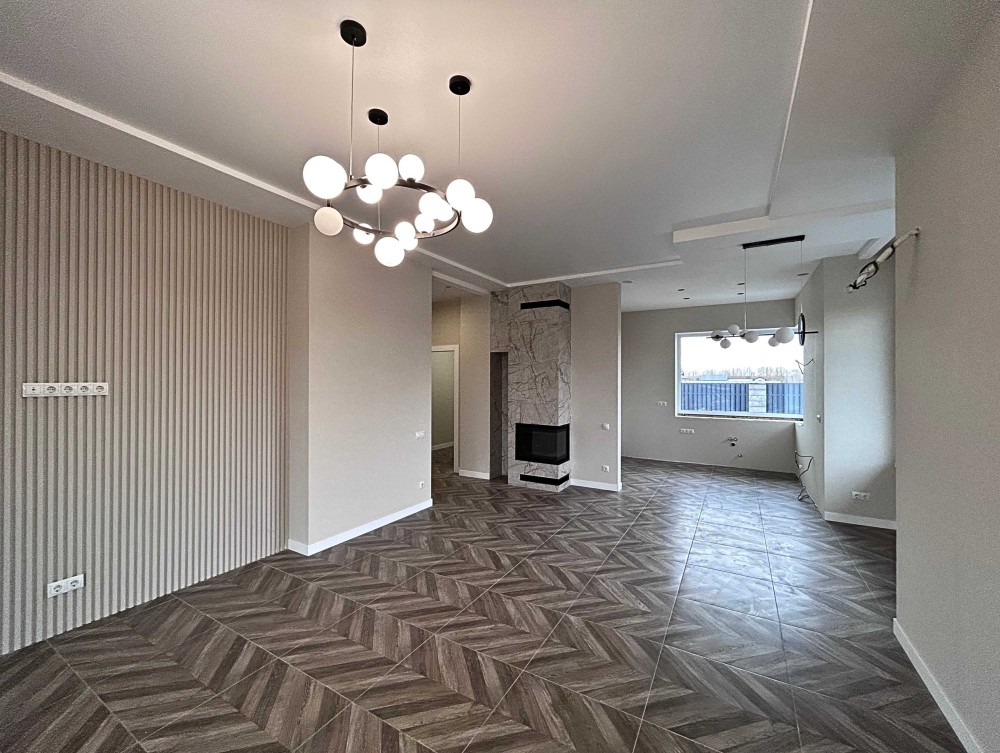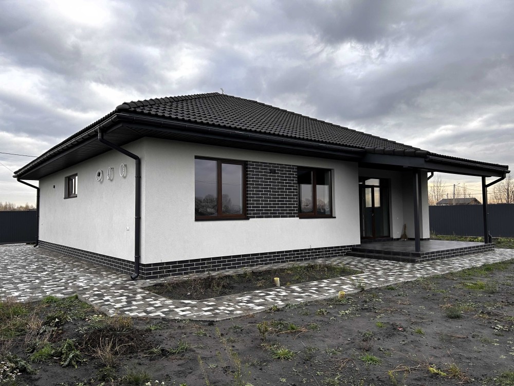Пропонуємо новий будинок з дизайнерським ремонтом - 134 м2, з ділянкою 12 соток, в с. Погреби, вул. Кодацька, 71, Броварського р-н. Будинок знаходить біля озера, поряд річка, пляж, спортивні майданчики, добрі сусіди.