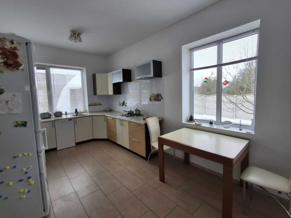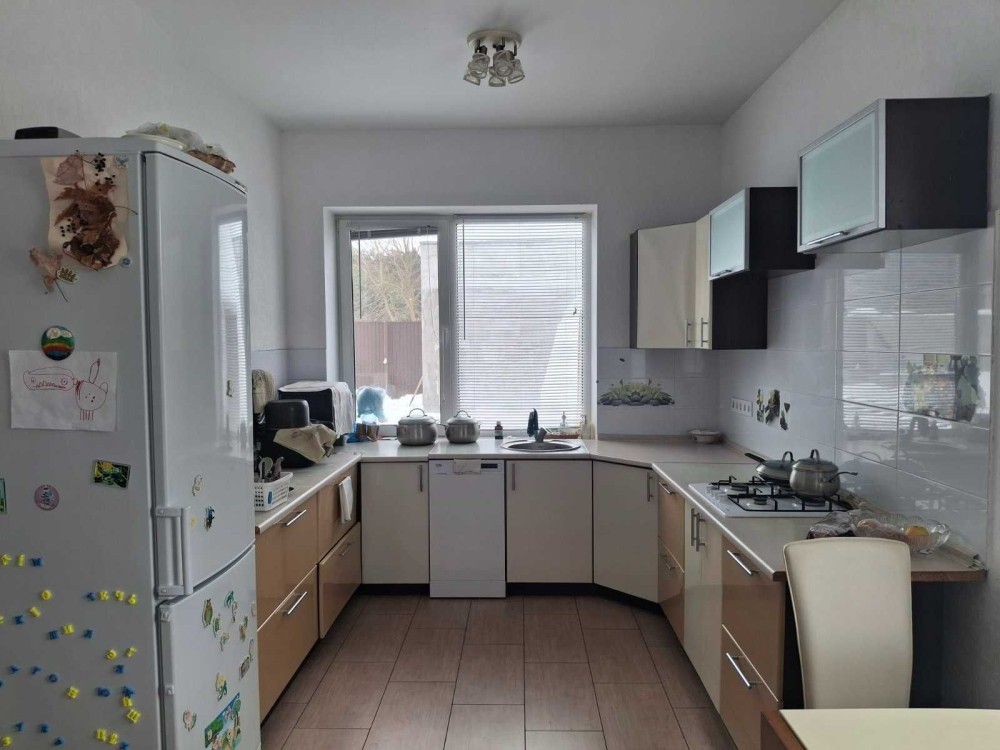 Мрієте про тишу природи? Сосновий ліс, каскад озер з пляжами, чисте повітря — усе поруч! Асфальт до двору, 15 хв до Києва. Готовий до життя одноповерховий будинок 90 м² з ремонтом у світлих тонах (для себе робили, не для продажу). Водяна тепла підлога скрізь (керамограніт тримає тепло), білі шпалери, натяжні стелі, якісна сантехніка.