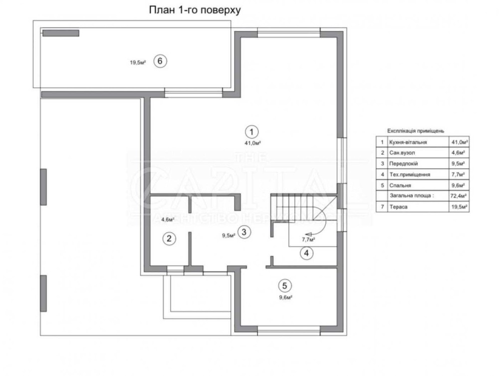 - тераса 19.5 м2 (додатково до площі будинку);