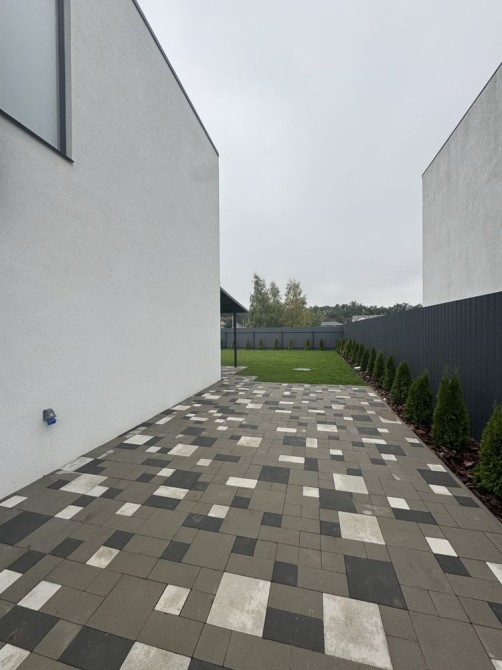Крита тераса, бруківка по периметру та під парко місце, озеленення території.