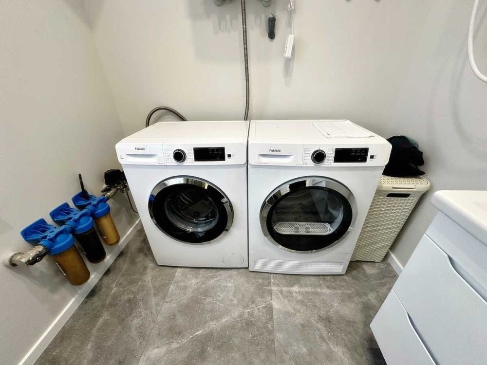 В передпокої встановлена шафа, в технічній кімнаті розташовані газовий та електро- котли, пральна та сушильна машинки.