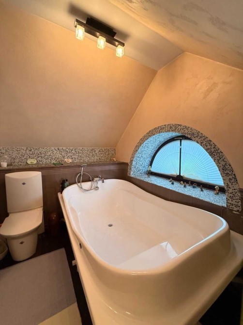 • Побудований з пеноблоку (50 см) з облицюванням цеглою, товщина стін — 70 см: тепло та шумоізоляція на найвищому рівні, вентильований фасад.