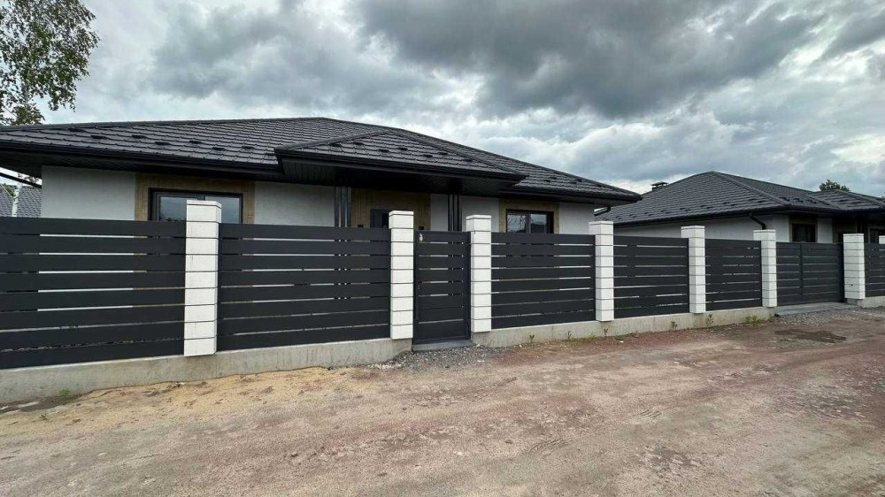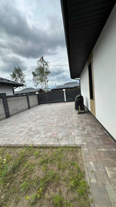Планування зручне та продумане: простора кухня-вітальня з виходом на терасу, три окремі спальні, санвузол і котельня. Встановлена шахта під камін. Двір облаштований, укладена бруківка, паркан із бетонних блоків.