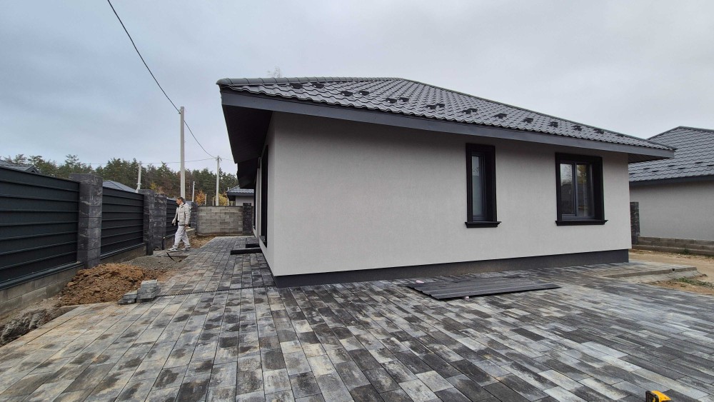 Якісний паркан із цементних блоків. Облагороджена територія, бруківка.