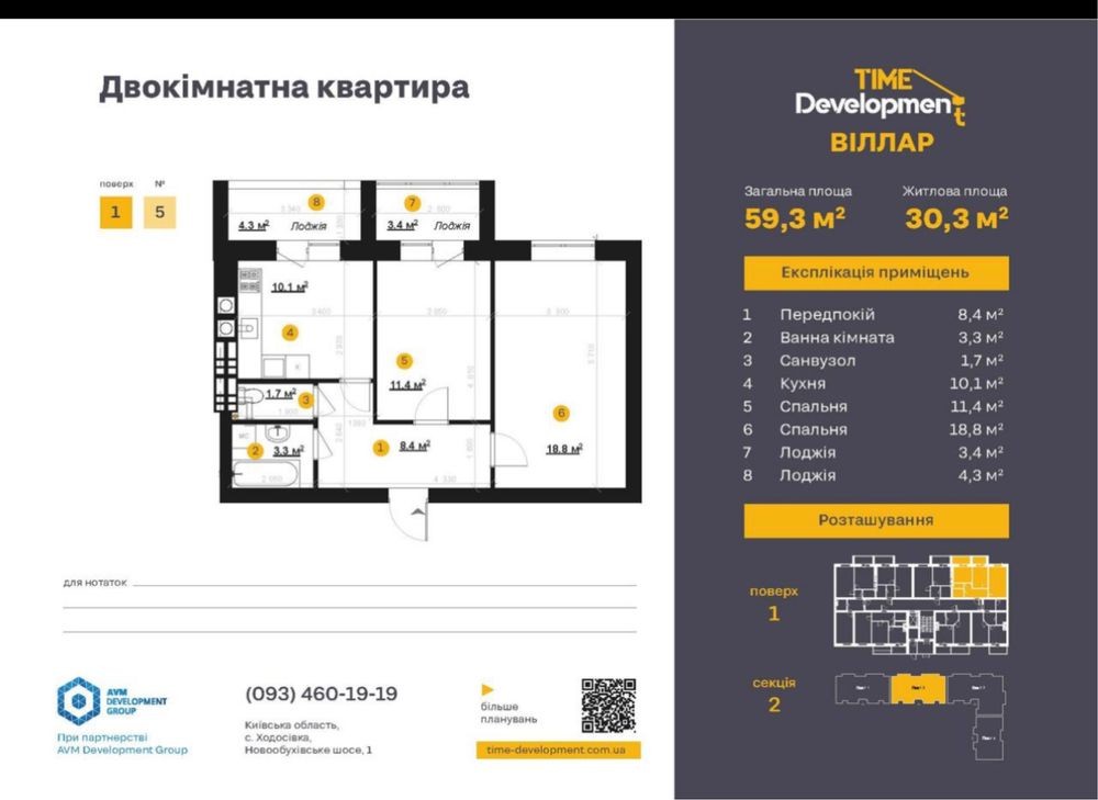 • Общая площадь 57.3 м2