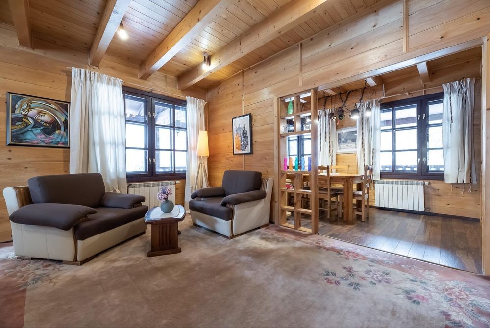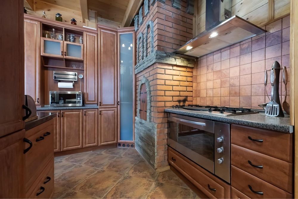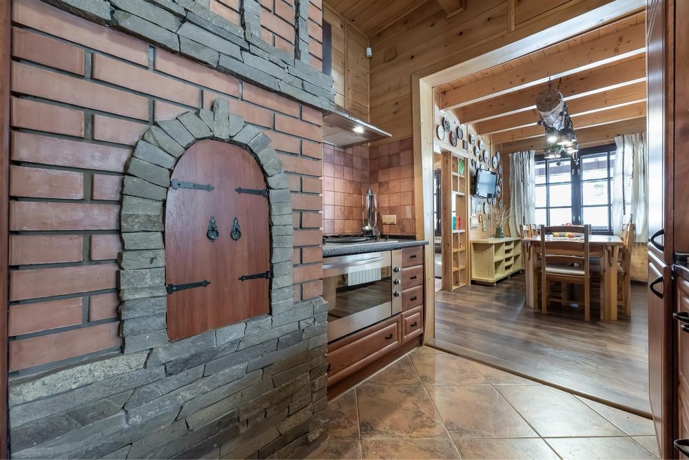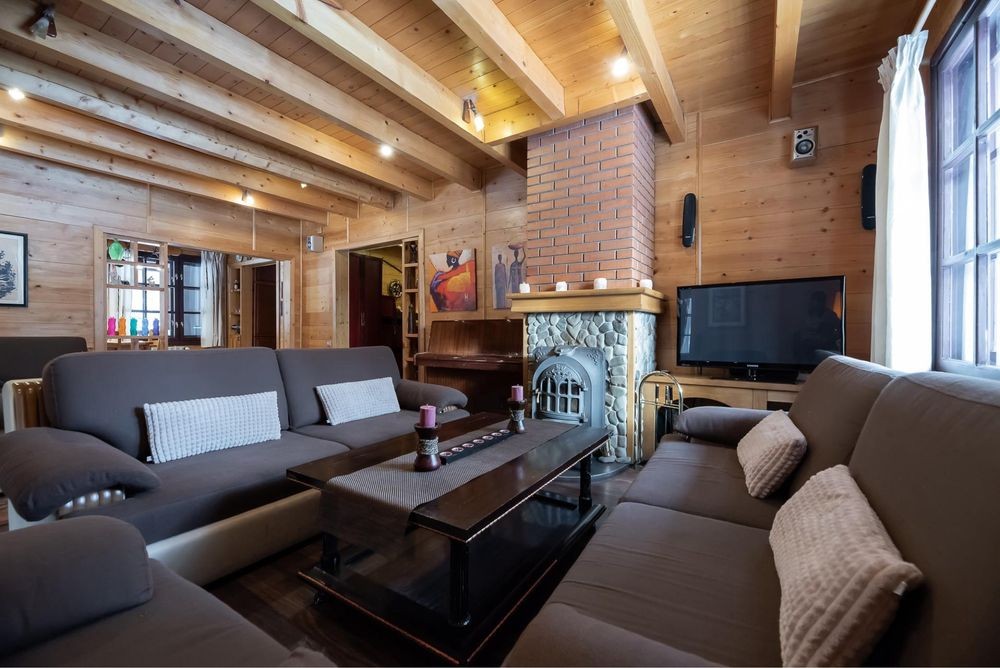 У просторій вітальні розташований французький камін із цегляним димоходом, який створює атмосферу затишку й дає реальне додаткове тепло, що сьогодні особливо важливо.