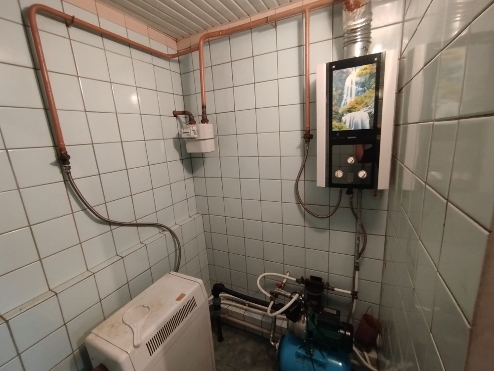 Є газова колонка для подачі гарячої води.