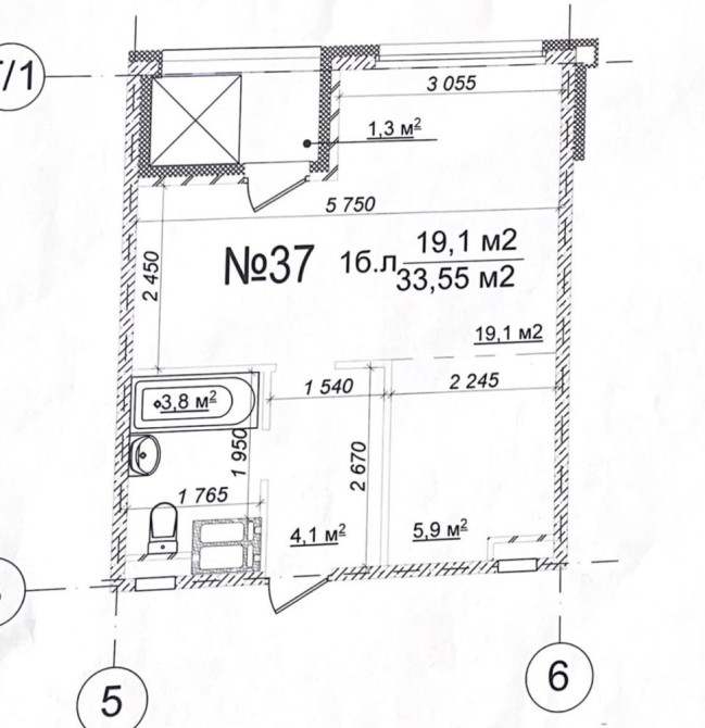 • Общая площадь 33.55 м2