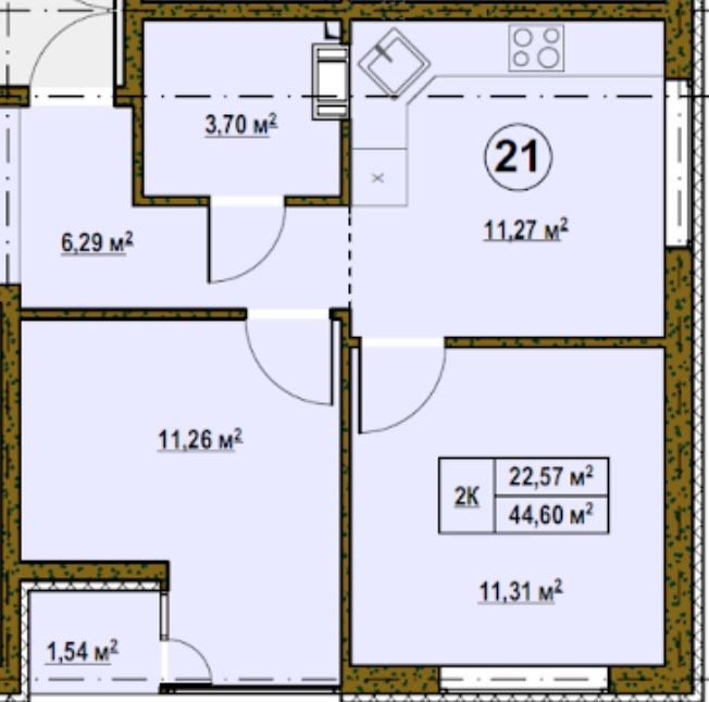 • Общая площадь 44.6 м2