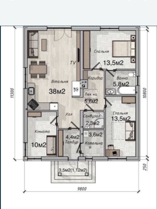 • Загальна площа: 110 м²