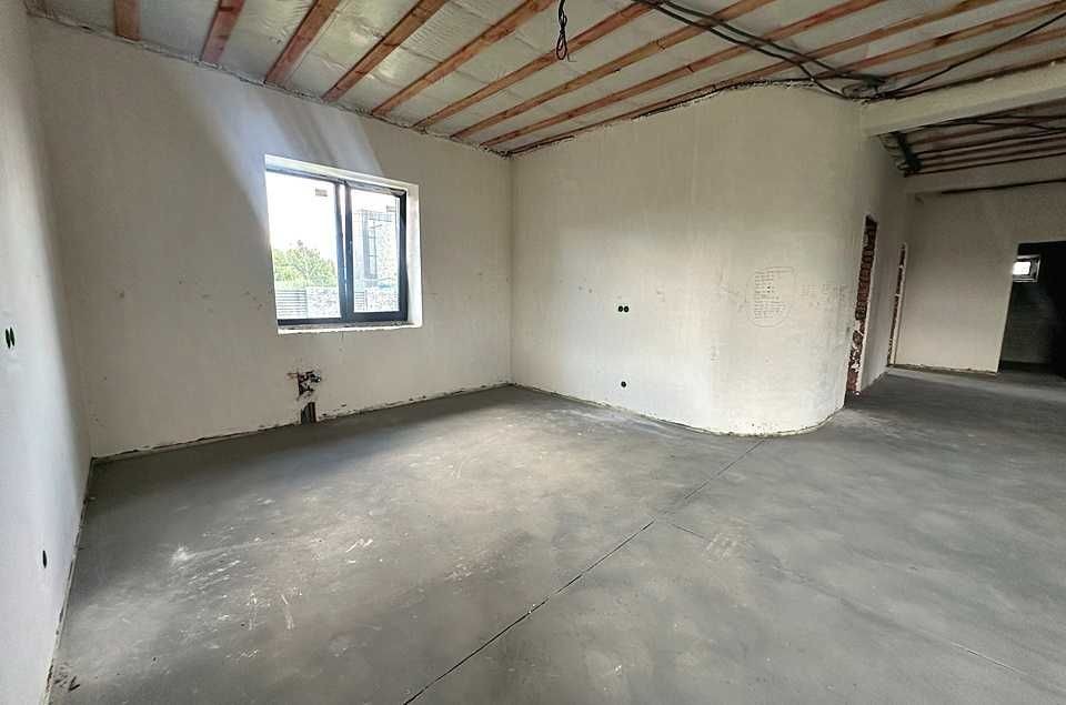 Зручне планування з 3 окремими кімнатами, 2 санвузлами, зручним коридором та просторою кухнею-вітальнею (52 м²) з виходом на велику, криту, терасу.