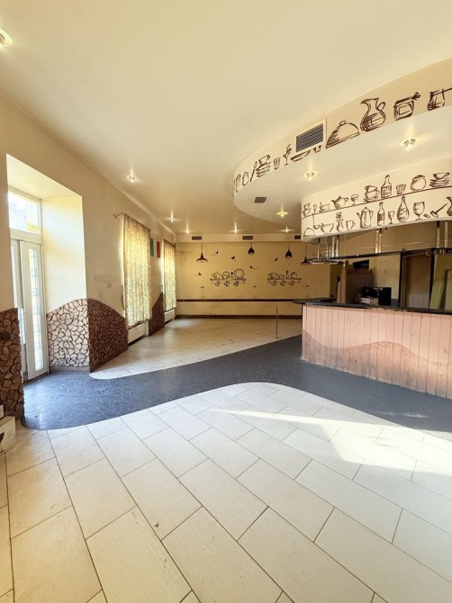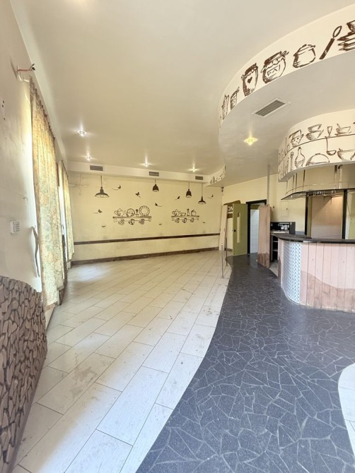 Объект расположен на 1 этаже 3-х этажного здания из ракушечника, общая площадь - 126,2 кв.м, состоит из помещений различной площади - зал 82 кв м, подсобные помещение и санузелы.