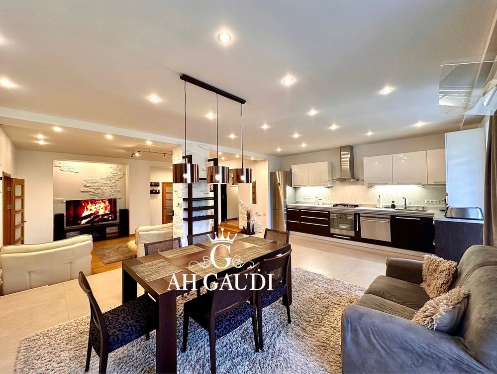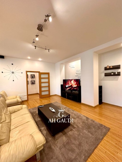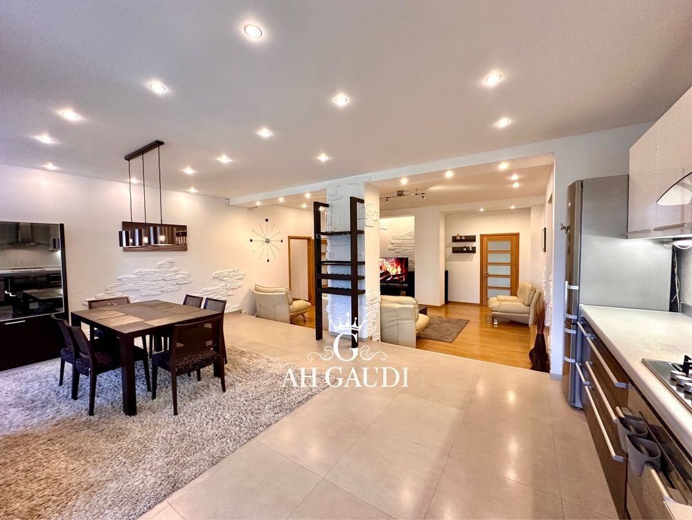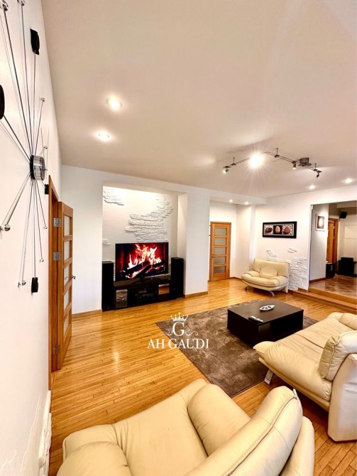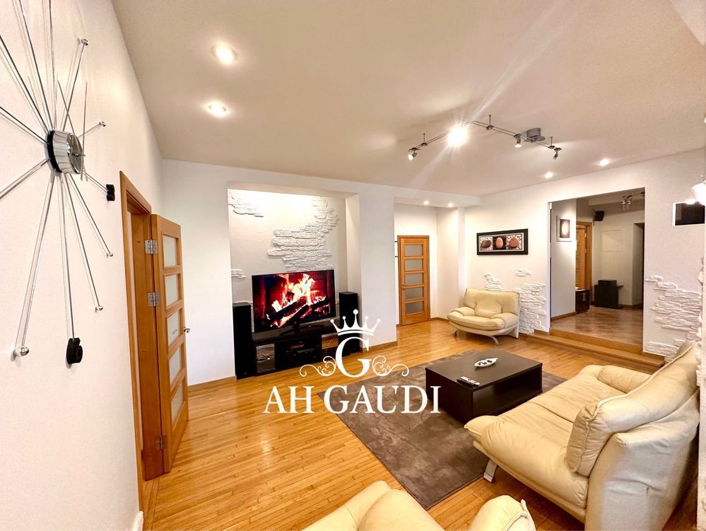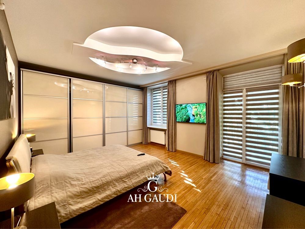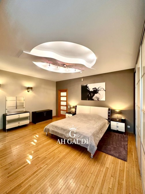 Большая гостиная 60м.кВ, высокие потолки, три отдельные комнаты. Квартира на две стороны, оочень большой шкаф купе и гардеробная, 2 санузла, финская сауна на 8 квт.