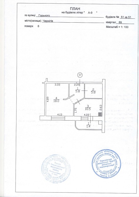 1 кімнатна плюс нежитлове приміщення між поверхами.