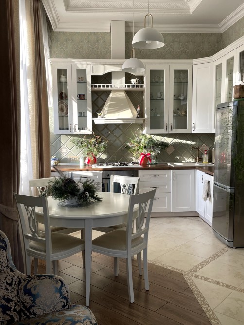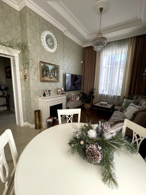Висота стелі 3,5м, величезні вікна висотою 2 метри, дуже світла і дуже тепла квартира (товщина стін 80 см)