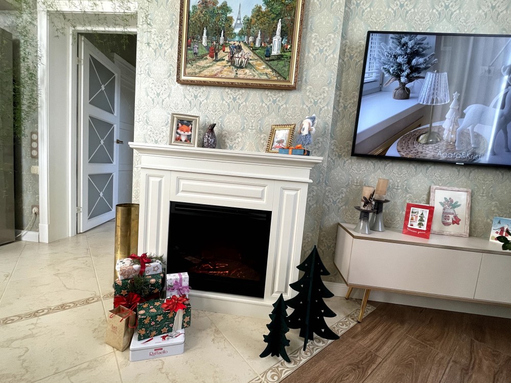 Ванна оснащена іспанськими кахлями від фірми Peronda та італійською сантехнікою Bugnatese та топовою пральною машиною LG на 8,5 кг з пранням парою, клас енергоефективності А+++ Вітальня оснащена електро каміном який додає тепло та затишок у оселі.
