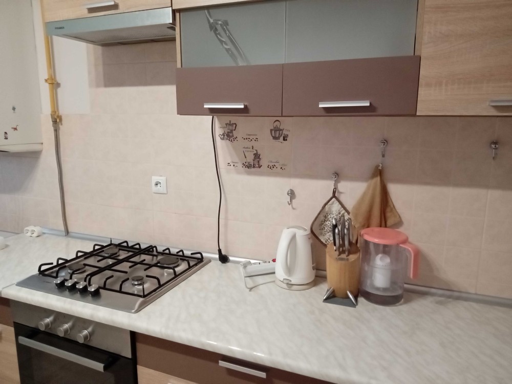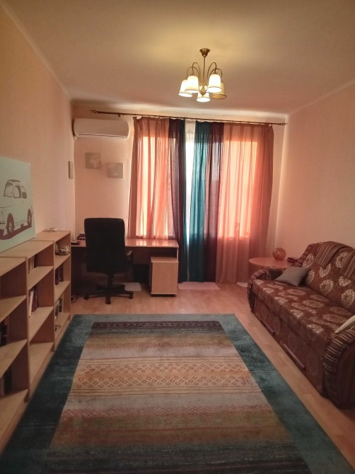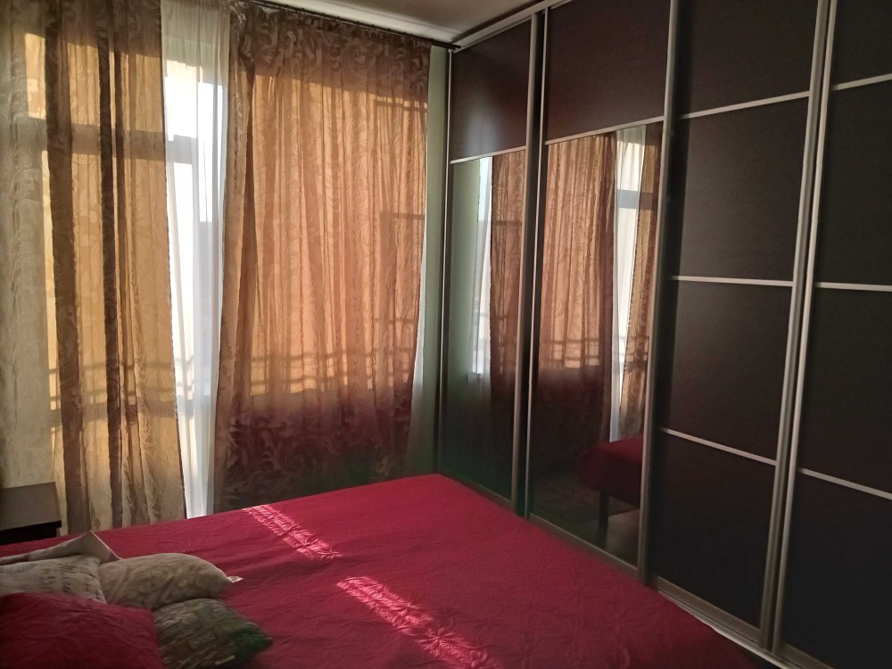 3кімнатна квартира, перебудована у 2кімнатну. Кухня-студія має телевізор, кондіціонер, диван, софу, посудомийну машину, пральну машину, витяжку, духову піч та вихід на балкон. Вікна кухні виходять у двір. Вікна спальні на проспект Миру. В спальні також є кондіціонер та телевізор. Ванна велика, має вуглову ванну та бойлер. Підійде для сімї з 3 людей. Поряд знаходиться бібліотека, магазин, море, кафе, банк та парк. Здається з проживанням і влітку також, без виселення. Деталі за телефоном.