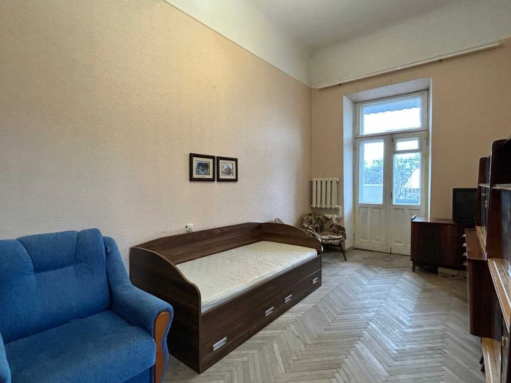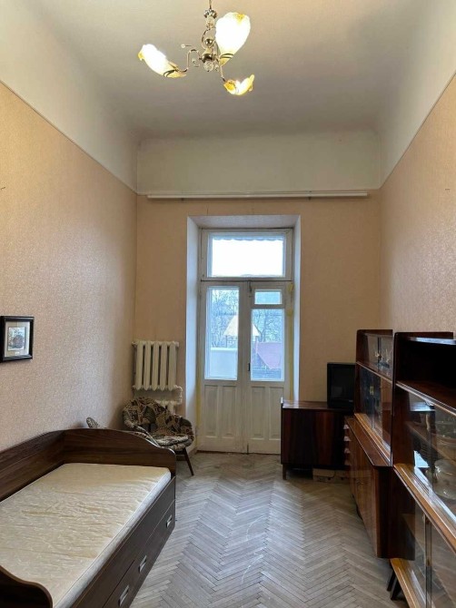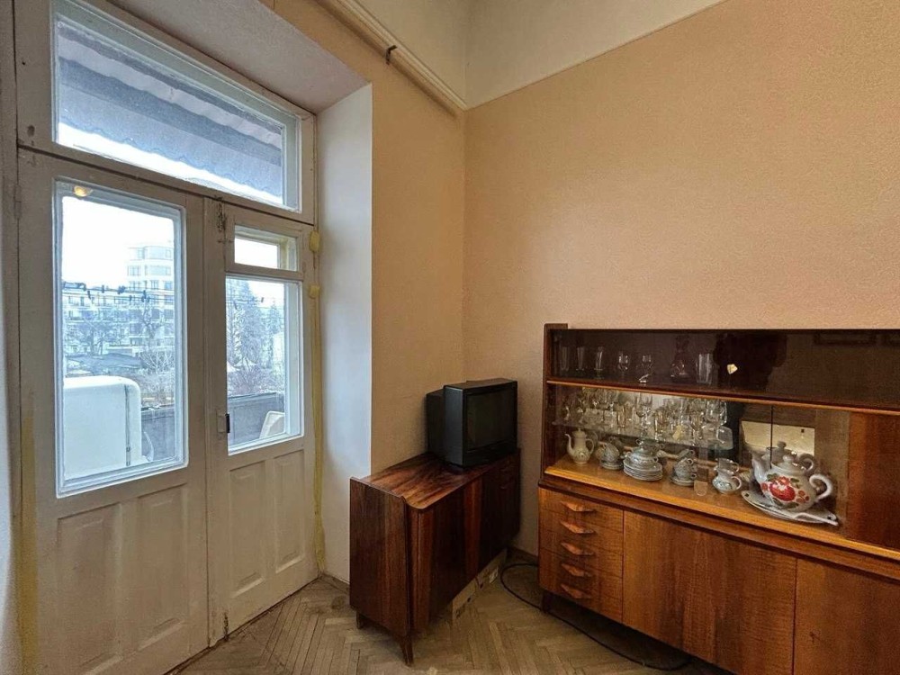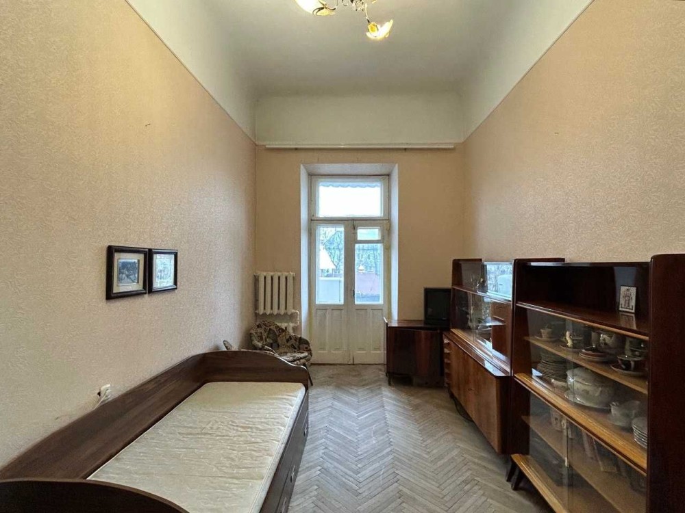 Висота стель 3.80 м, підлога – паркет у гарному стані, встановлені металопластикові вікна; гаряча вода – від газової колонки, опалення – централізоване.