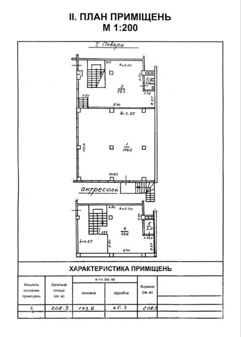 Общая площадь - 208,9 кв.м - два уровня, залы 104, 59 и 39 кв.м, санузел, подсобные помещения.